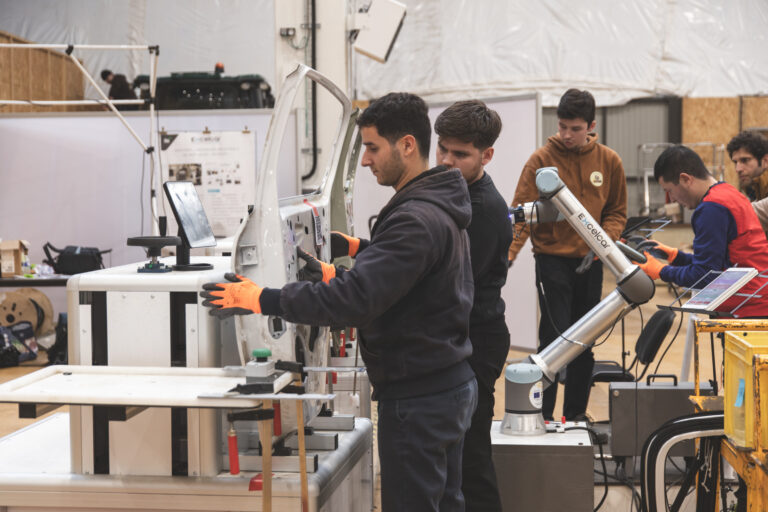 Le cobot (robot collaboratif) permet de travailler en sécurité aux côtés des élèves et de simuler des environnements industriels collaboratifs. Il est utilisé pour l’apprentissage de la programmation, l’automatisation de tâches et l’intégration dans des processus de production flexibles. Les élèves découvrent ainsi les pratiques de l’industrie 4.0 et la collaboration homme-machine.